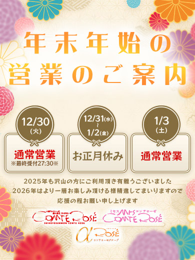 1月4日・5日・6日の事前ご予約は、3日(土)18時〜受付とさせて頂きます。